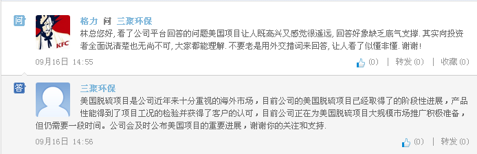 三聚环保:美国脱硫项目获阶段性进展