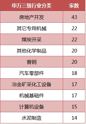 而业绩预告为负面的行业主要包括房地产开发,机械、煤炭开采、普钢、汽车零部件、计算机设备和水泥制造等行业,具体见下表: