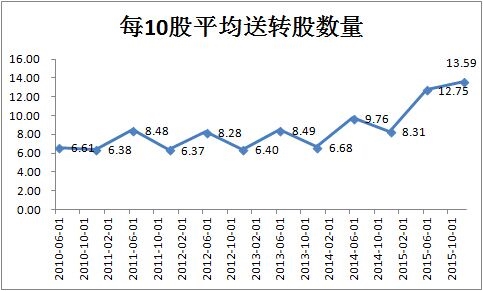 [从2005年的0.45(即平均10股送转4.5股)提高到2014年的0.83(10股送转8.3股)。]