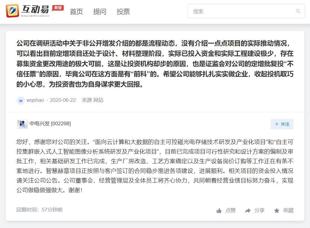 中电兴发:磁光电存储技术相关基础研发工作已完成 生产询价等工作正进行中
