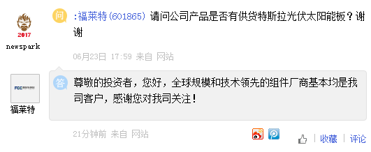 上证报中国证券网讯 福莱特6月30日在互动平台回答投资者提问时表示,全球规模和技术领先的组件厂商基本均是公司客户。