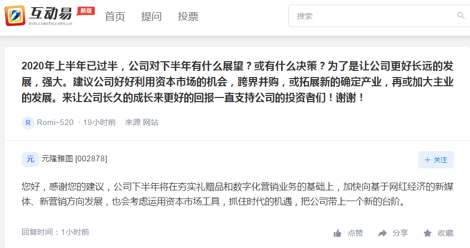 元隆雅图:下半年将加快向基于网红经济的新媒体、新营销方向发展