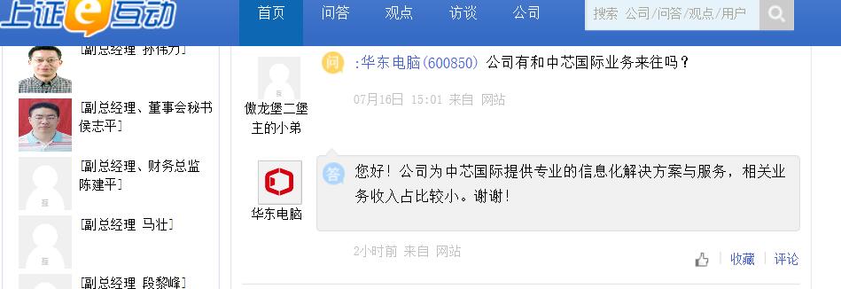 上证报中国证券网讯 华东电脑21日在互动平台回答投资者提问时表示,公司为中芯国际提供专业的信息化解决方案与服务,相关业务收入占比较小。