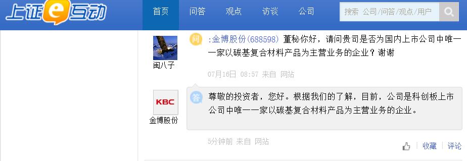 上证报中国证券网讯 金博股份23日在互动平台回答投资者提问时表示,据了解,目前,公司的确是科创板上市公司中唯一一家以碳基复合材料产品为主营业务的企业。