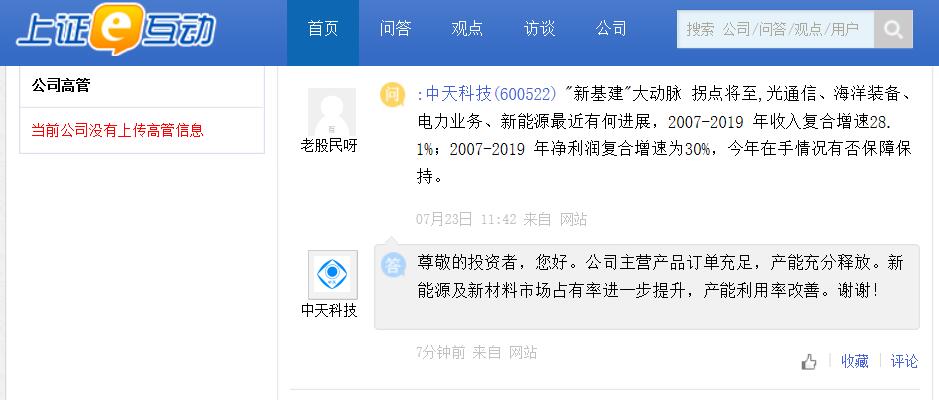 中天科技:新能源及新材料市场占有率进一步提升