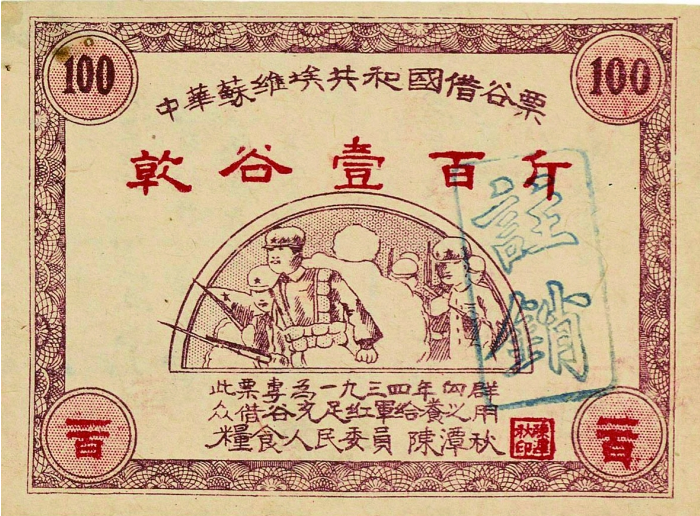 除此之外,根据地政府还开创性地推出“实物公债”,1933年至1934年,中央苏区因地制宜采用粮食公债形式,开展三次借谷运动,借谷票证实际上就是实物公债。值得一提的是,新中国成立后,中央人民政府对解放前未清偿的苏区公债进行统一收兑,有力维护了党和政府的信誉。