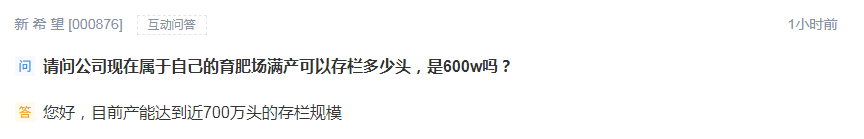 新希望:目前产能达到近700万头的存栏规模