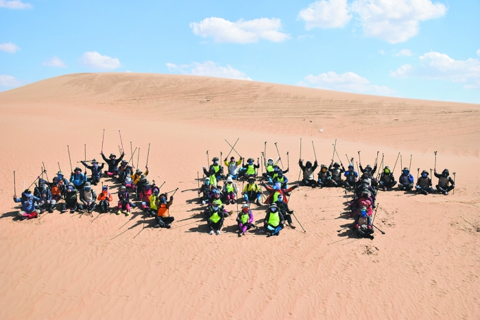 团建中的安博通,在库布齐沙漠摆出公司名“ABT”