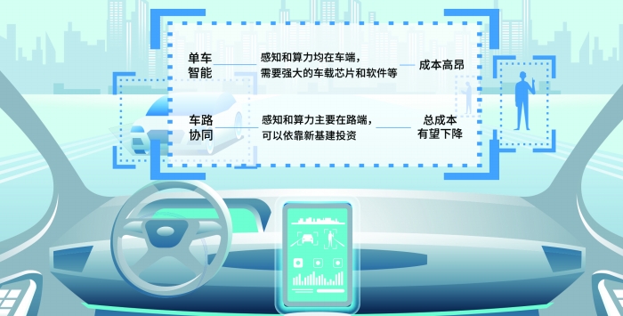 光大证券研报表示,单车智能感知和算力均在车端,需要强大的车载芯片和软件等,而车路协同感知和算力主要在路端,可以依靠新基建投资。不同的感知和算力分配方式所对应的自动驾驶成本也不同,单车智能的成本高昂,若用路侧设备代替部分技术,让路“变聪明”,智能汽车的总成本有望下降。