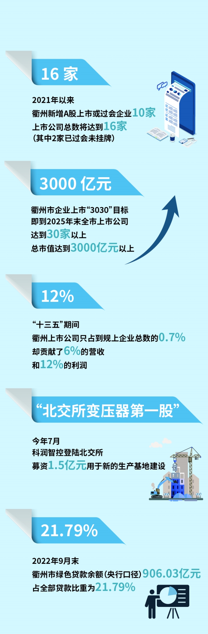 聚焦资本市场,衢州市在今年4月启动了企业上市“3030”行动,实施梯队企业扩容、培育企业成长、上市公司提质、企业上市畅通“四大工程”,力争到“十四五”末全市上市公司数量达到30家以上、总市值达到3000亿元以上。与之对应,聚焦“板块全覆盖、过程全保障、标准再提高”,衢州出台了一揽子支持政策。