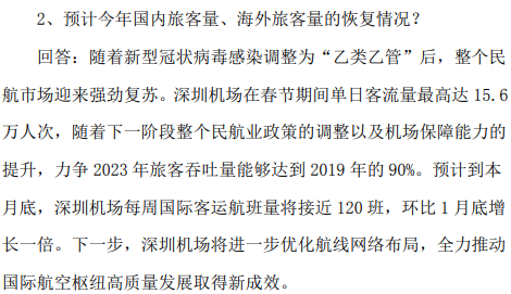 深圳机场:预计到本月底每周国际客运航班量将接近120班 环比1月底增长一倍