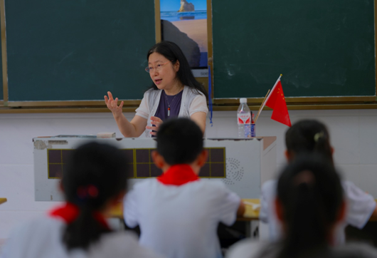 白岚正在给孩子们上写作课 。 摄影/阙道华 谢逸隼 杨洋