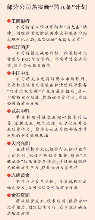 随着新“国九条”的发布实施,多家沪市公司认为,资本市场将稳步发展为优化资源配置、辅助科技与实践创新的平台。